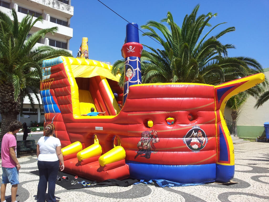 Jogos e diversão é que não faltam neste espaçoso insuflável! Um Bongo, um bongo, um bongo!